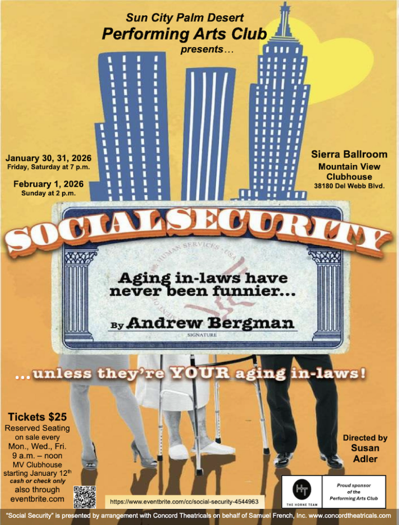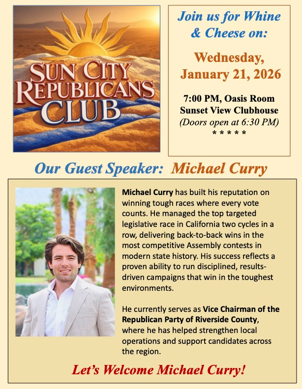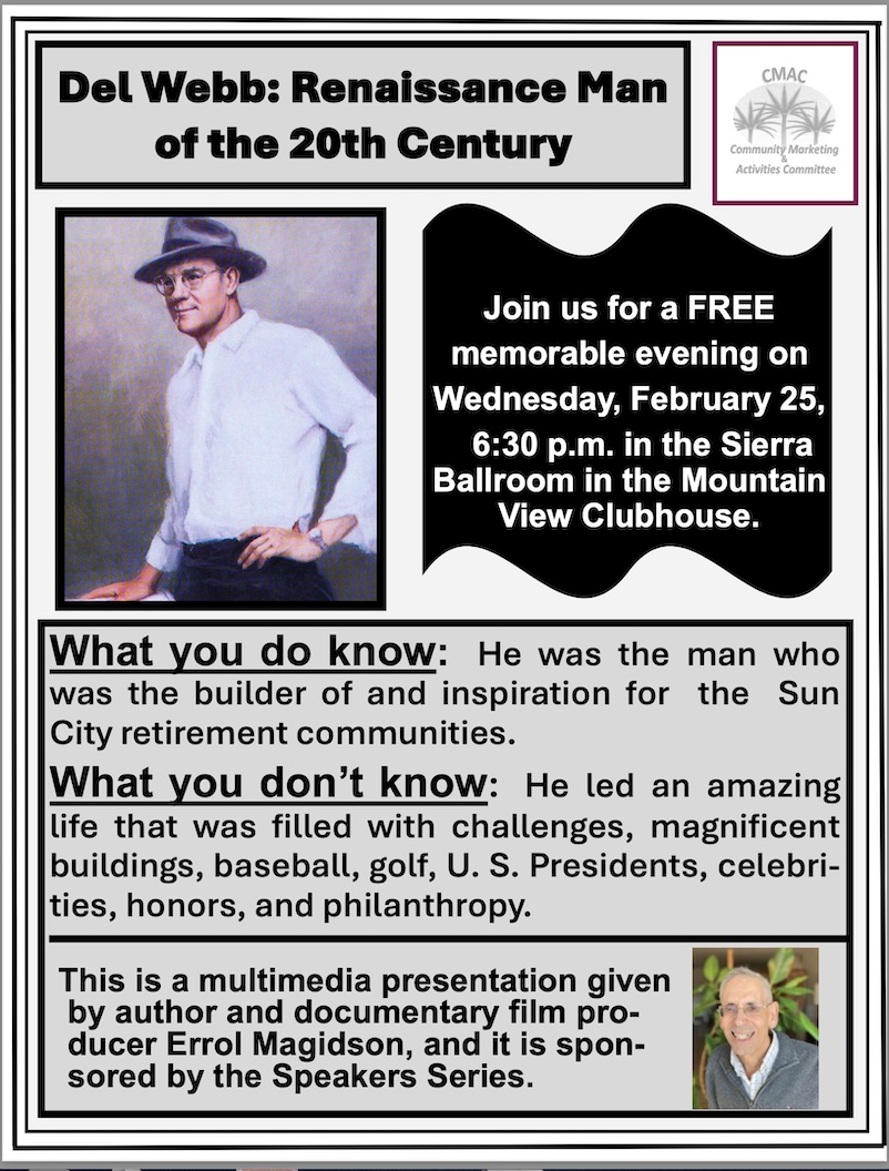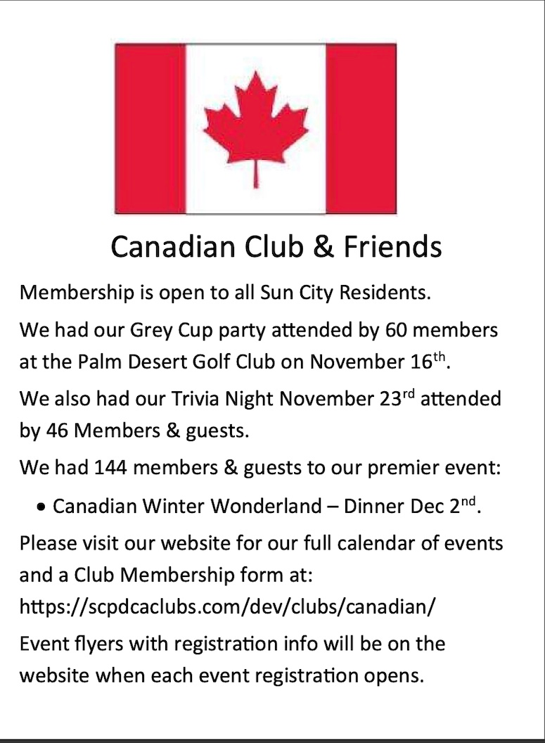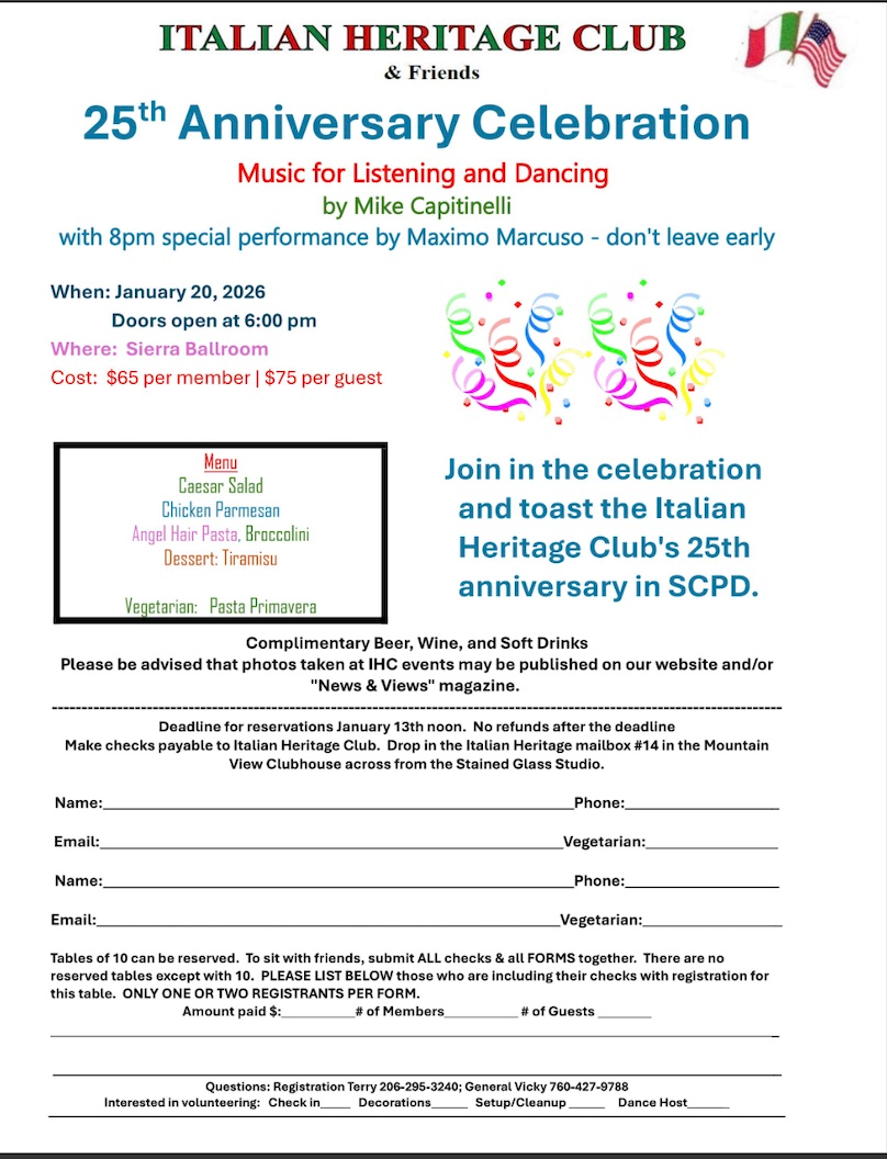 SCPD EVENTS PAGE Joel Effron July 21, 2025 Click any flyer to see larger version SCROLL ALL THE WAY DOWN TO SEE ALL THE FLYERS Mon Jan 19 Tues Jan 20 Jan 8 & 24 Wed Jan 21 Wed Jan 21 Thur Jan 22 Thur Jan 29 Jan 30,31 Feb 1 Jan 30, 31 Sun Feb 8 Thur Feb 19 Sat Feb 2/24 Wed Feb 25 To Return to the Sun City Palm Desert Home page CLICK HERE